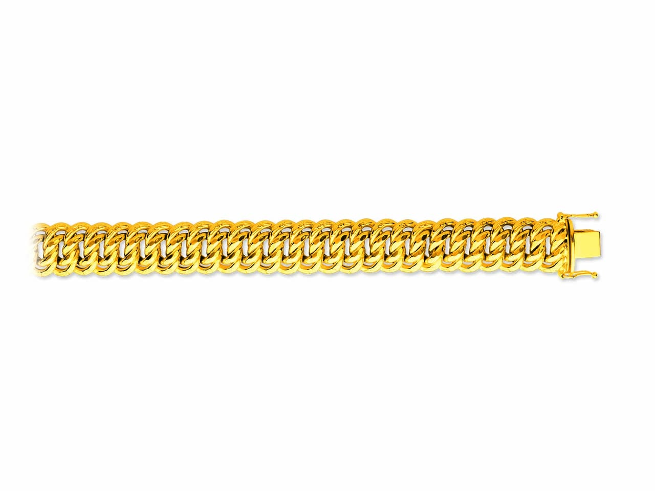 Maille creuse. Longueur : 19 cm. Diamètre du fil ou de la chaine : 14 mm. Fermoir : Cliquet. Or jaune 18k.