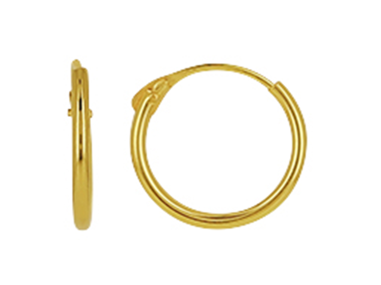 Créoles tube creux 1 mm, diamètre intérieur 8 mm, Or jaune 18k