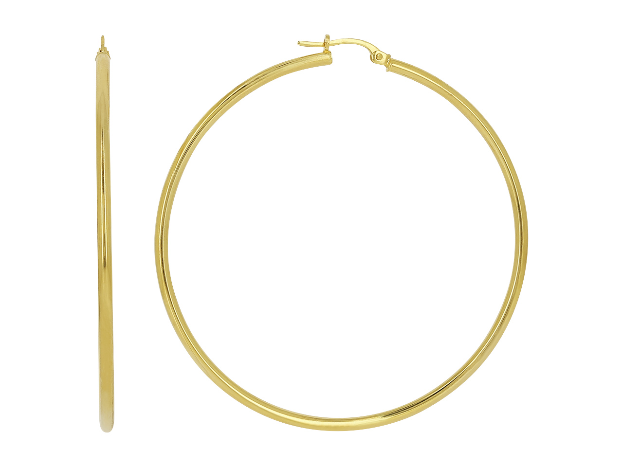 Créoles tube rond lisse 2 mm, diamètre intérieur 50 mm, Or jaune 18k - XLAA0178