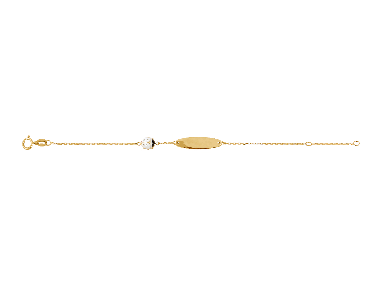 Identité bébé Coccinelle résine blanc et Oxydes de Zirconium, plaque ovale, 12-14 cm, Or jaune 18k - VLFRA275