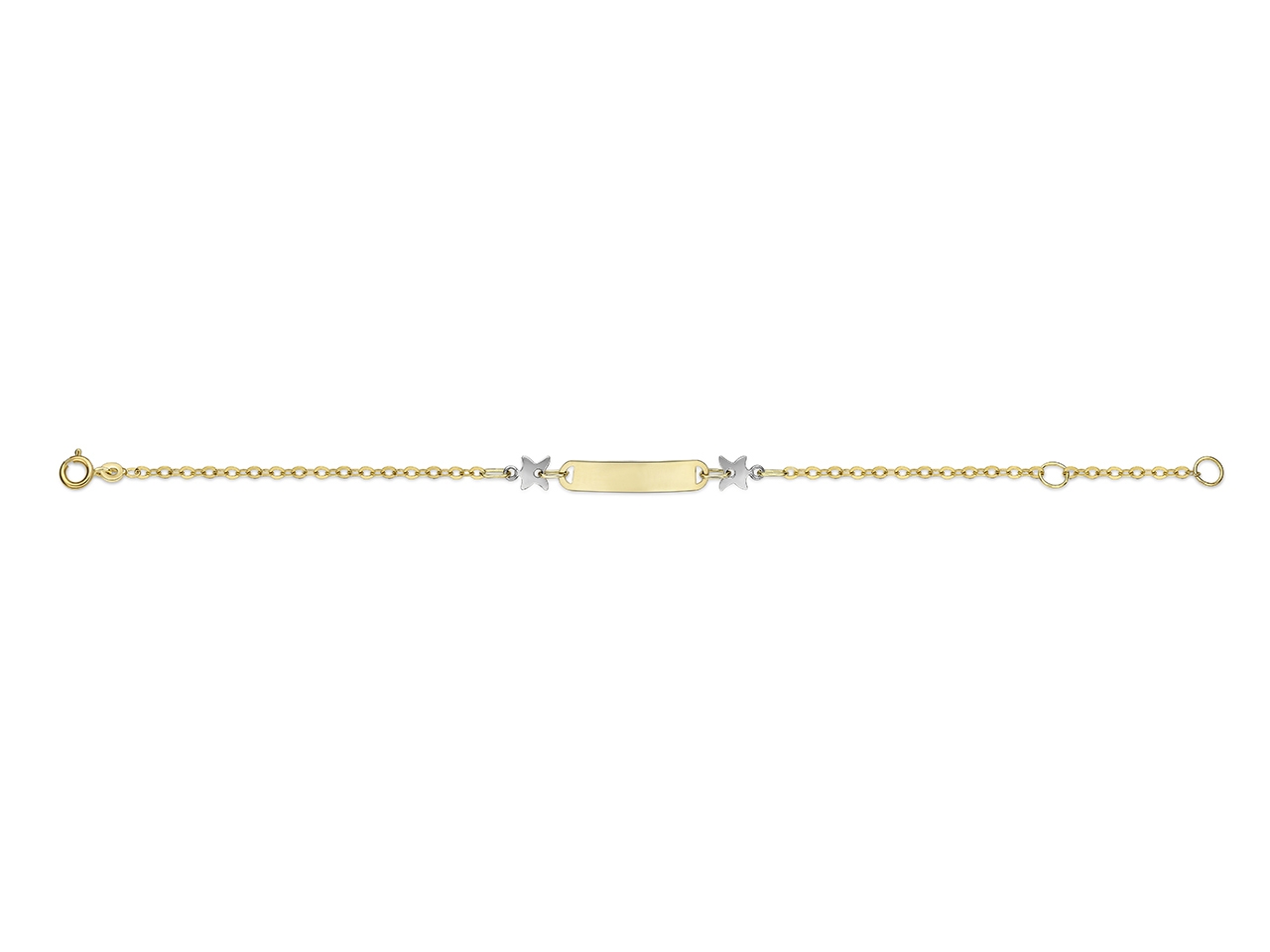 Identité bébé Plaque rectangle, motifs Fleurs, 14 cm, Or bicolore 18k - VNFR8002