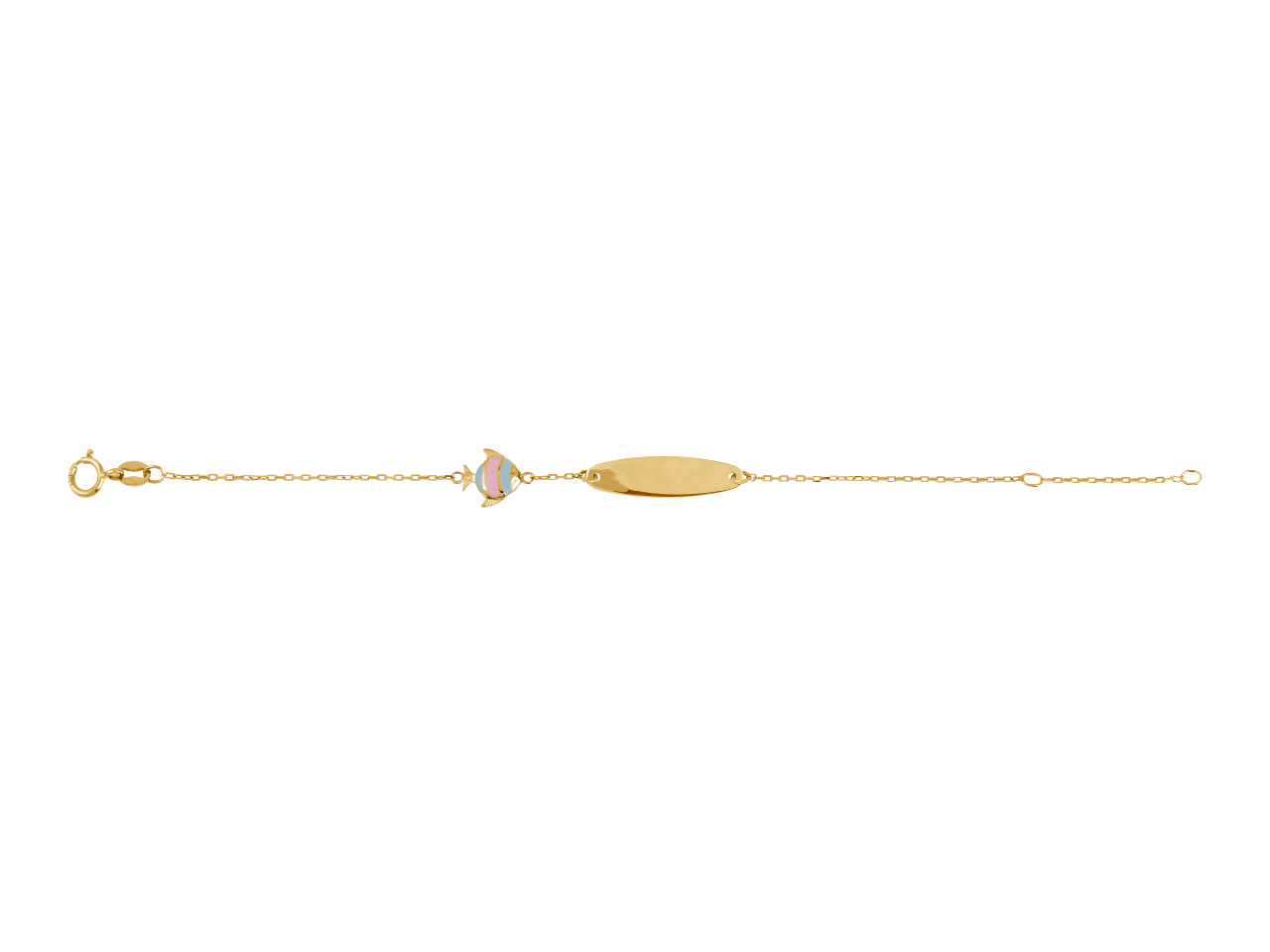Identité bébé motif Poisson, résine rose et bleu, plaque ovale sur chaîne, 12+2 cm, Or jaune 18k - VLFRA198