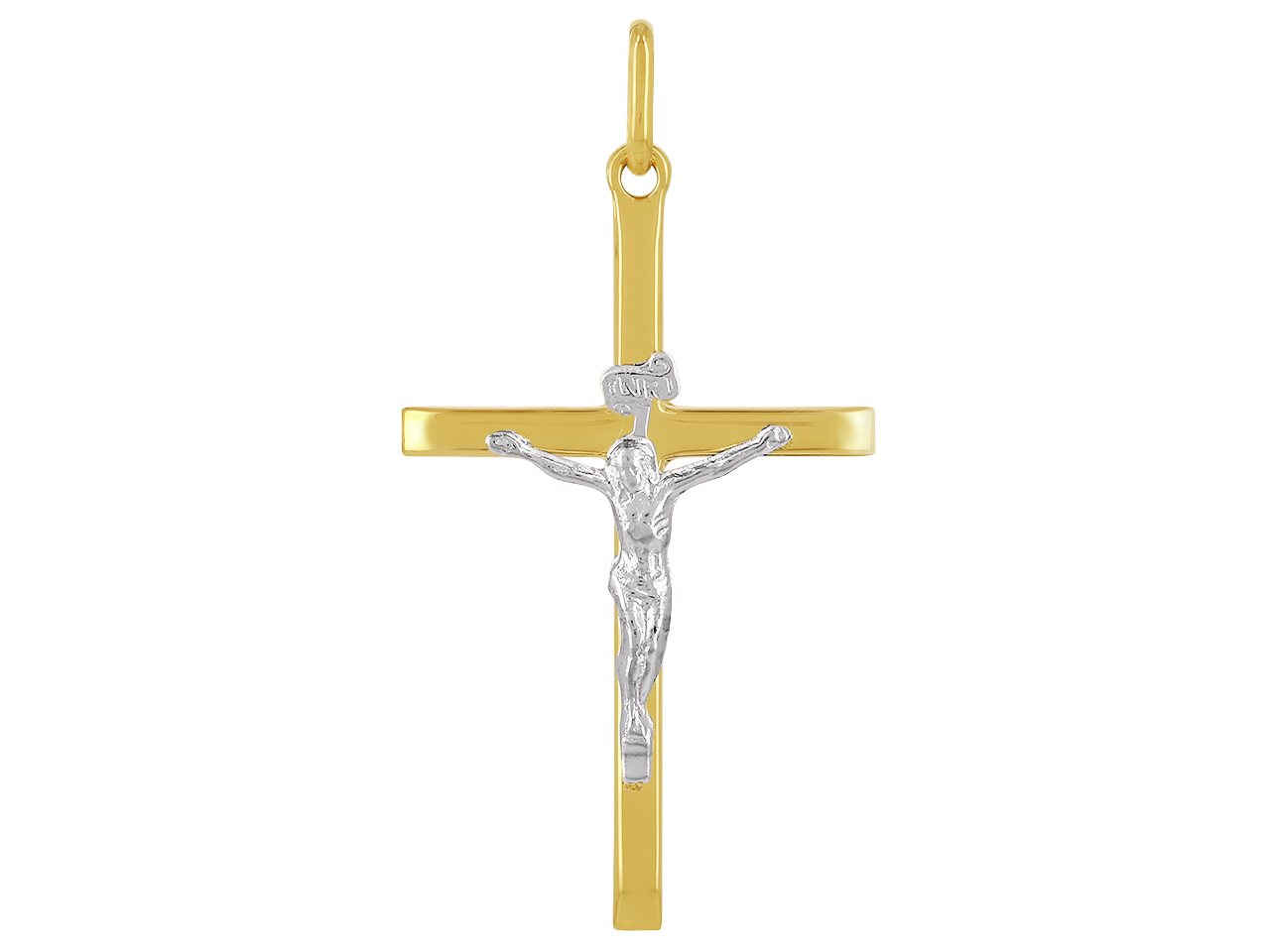 Pendentif Croix avec Christ, tube carré, 32 mm, Or jaune 18k - XLAA0050