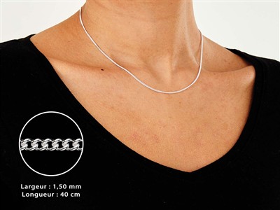 Cette chaîne Gourmette en Argent 925 est idéale pour les pendentifs et breloques de taille moyenne. Elle a une largeur de 1,50 mm et chaque maillon mesure environ 1,90 mm de long. La longueur t...