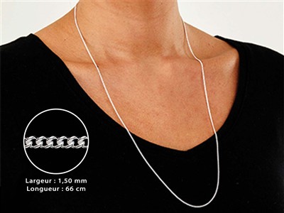 Cette chaîne Gourmette en Argent 925 est idéale pour les pendentifs et breloques de taille moyenne. Elle a une largeur de 1,50 mm et chaque maillon mesure environ 1,90 mm de long. La longueur t...