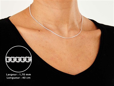 Type de Maille : Maille Gourmette. Qualité de la finition : Standard (Excellent rapport qualité-prix). Type de Fermoir : Fermoir Anneau Ressort. Longueur du collier : 40 cm. Diamètre de la mail...