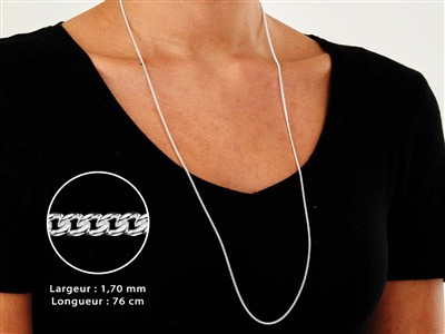 Cette chaîne Gourmette en Argent 925 est idéale pour présenter des petits pendentifs ou des breloques. Cette chaîne Gourmette a une largeur de 1,70 mm et chaque maillon mesure environ 2,30 mm d...