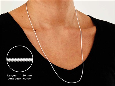 Cette chaîne Serpent ronde en Argent 925 est idéale pour mettre en valeur des petits pendentifs et breloques. Elle mesure 1,20 mm de large. La longueur totale est de 60 cm avec un fermoir Menot...
