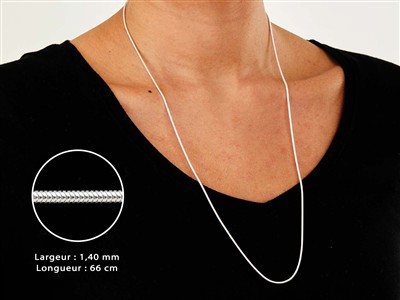 Cette chaîne Serpent ronde en Argent 925 est idéale pour mettre en valeur des petits pendentifs et breloques. Elle mesure 1,40 mm de large. La longueur totale est de 66 cm avec un fermoir Menot...