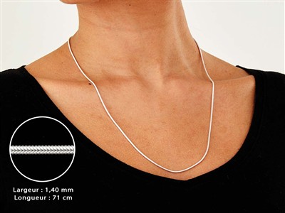 Cette chaîne Serpent ronde en Argent 925 est idéale pour mettre en valeur des petits pendentifs et breloques. Elle mesure 1,40 mm de large. La longueur totale est de 71 cm avec un fermoir Menot...
