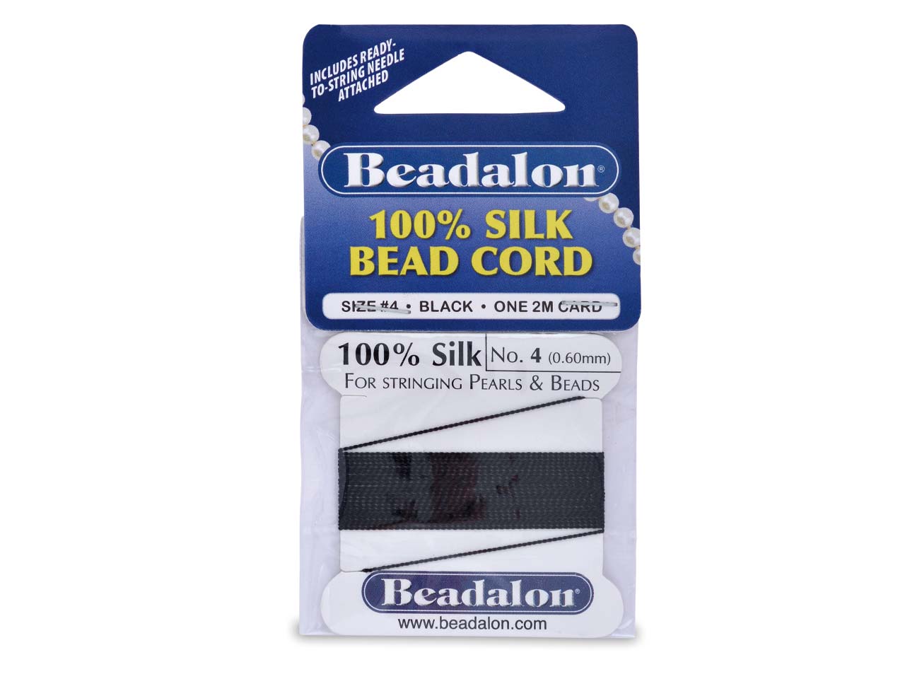 Fil Beadalon 100% soie Noire 0,60 mm, 1 aiguille, 2 mètres