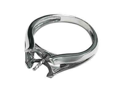 Solitaire Tourbillon 4 griffes pour pierre de 6 mm, Argent 925, doigt 53