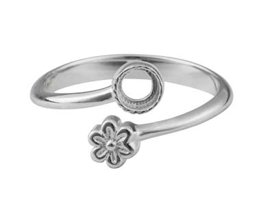 Cette bague ajustable en Argent 925 présente un Coeur comme motif et un serti clos pour un cabochon de 6 mm. La bague peut s'ajuster du doigt 50 au doigt 54. Choisissez une pierre pour personnaliser votre pièce. La Fleur ... Lire plus