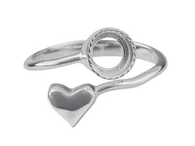 Bague ajustable motif Coeur, serti clos 6 mm, Argent 925