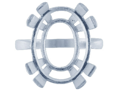 Bague serti 4 griffes pour pierre de 10 x 8 mm, Argent 925, doigt 52/53