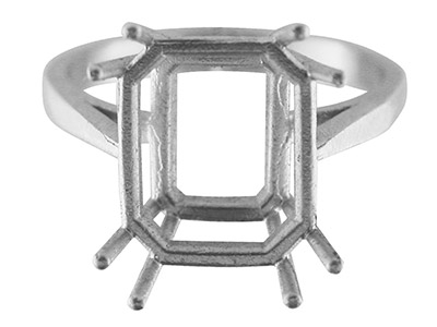 Bague serti 4 doubles griffes pour pierre taille émeraude de 12 x 10 mm, Argent 925, doigt 54