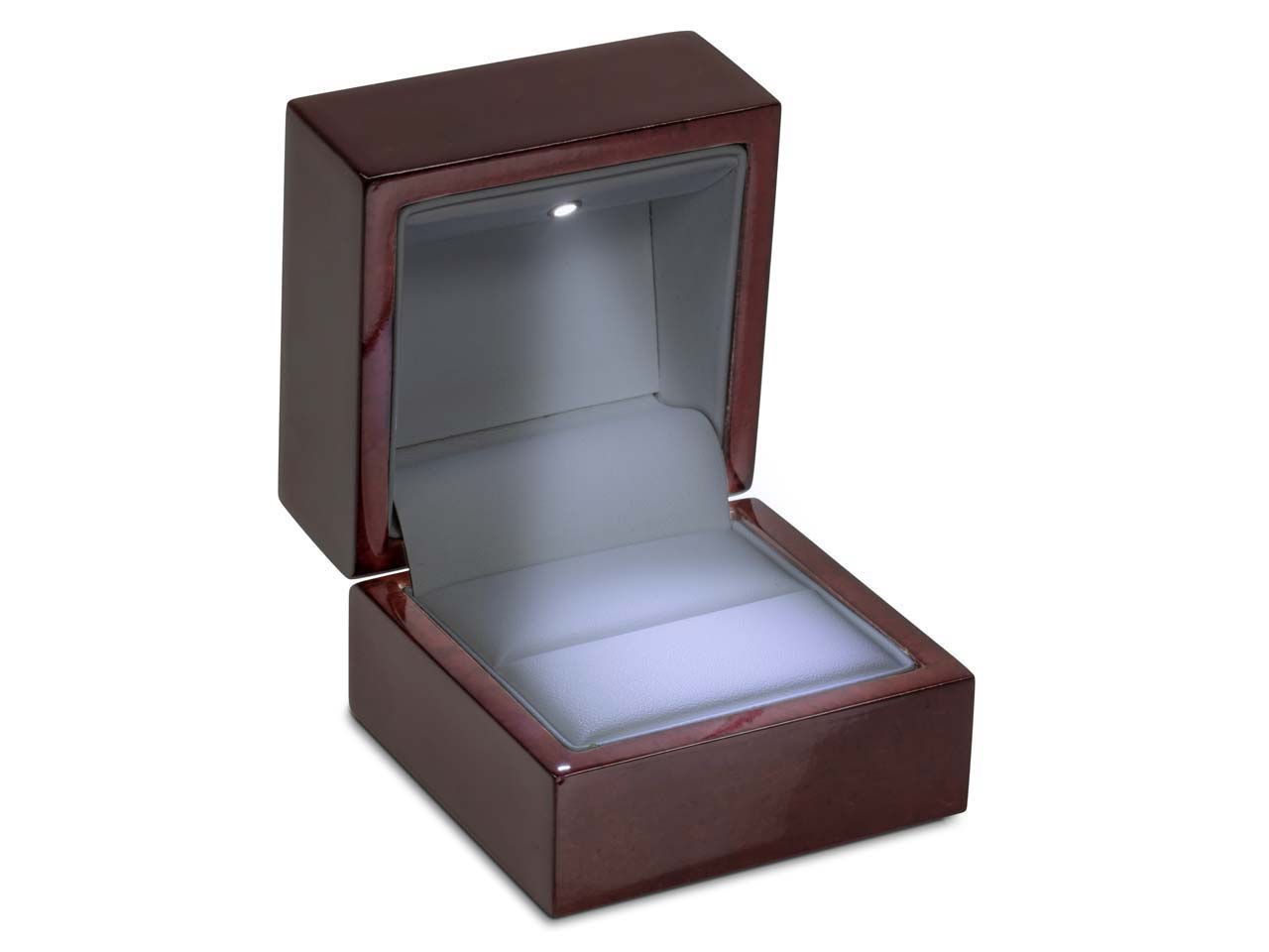 Cet écrin pour bague à effet Bois de rose est de finition polie. Il donnera à votre bague un attrait supplémentaire avec son intérieur éclairé par Led. La lumière LED brille directement sur la ...