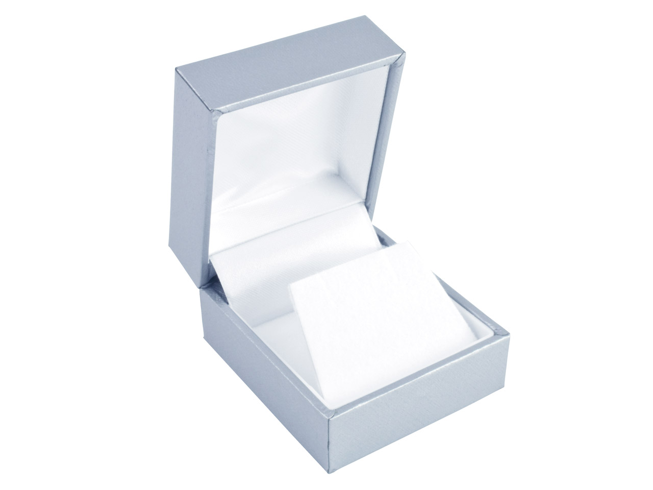 Ecrin pour boucles d'oreilles en similicuir argenté. Il mesure 45 x 50 x 30 mm. Intérieur blanc. Attention : les dimensions peuvent varier légèrement.