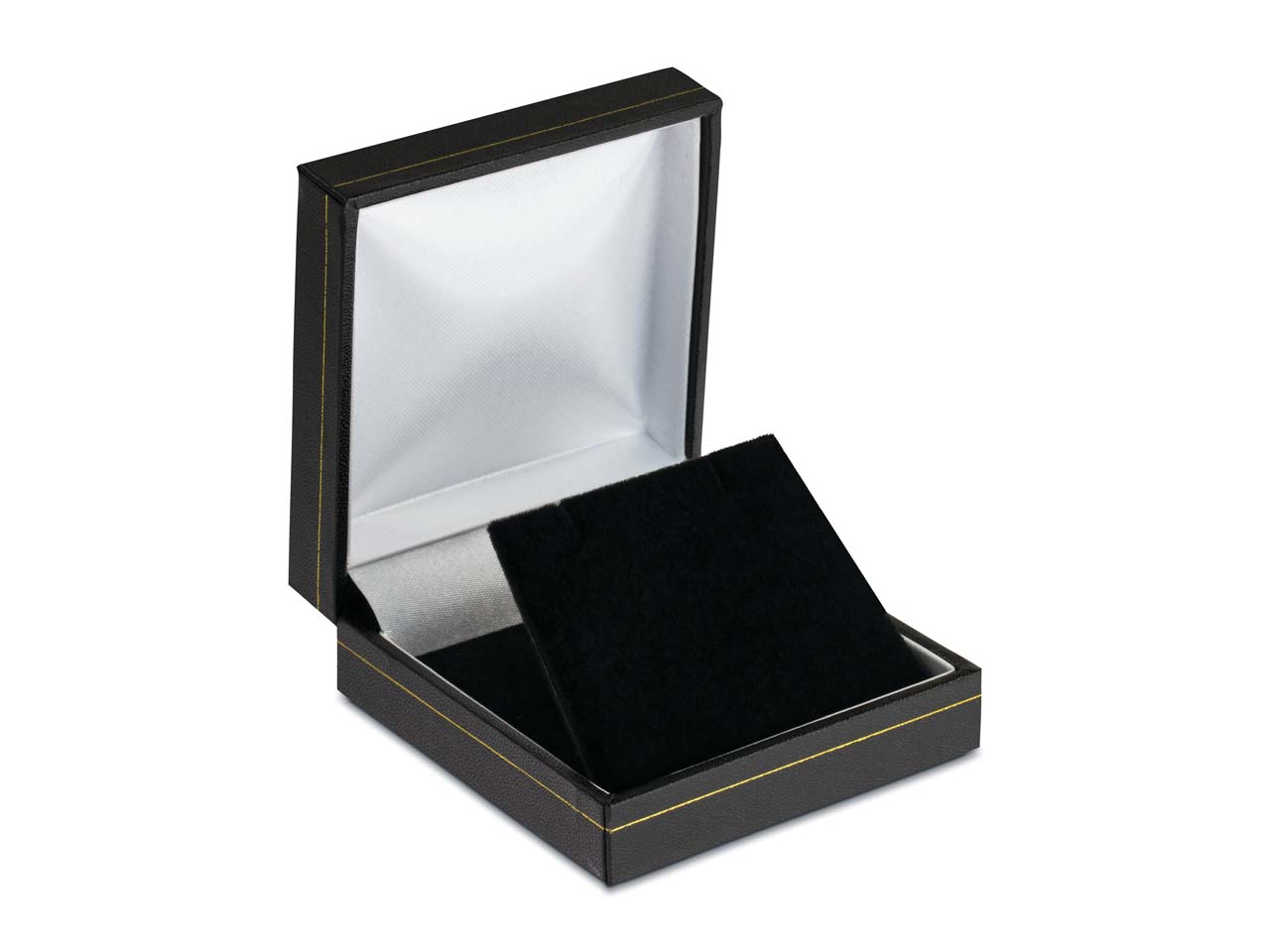 • Ecrin pour boucles d'oreilles pendantes, Similicuir noir avec liseré doré - Image Standard - 1