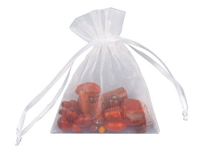 Pochette en organza munie d'un ruban satiné pour la fermeture. Dimensions : Largeur 7,6 cm Hauteur 10 cm. Pochette idéale pour emballer des bijoux ou encore des perles.
