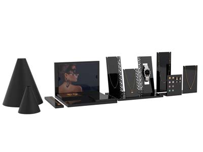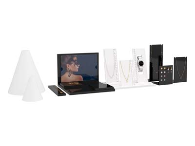 Ce présentoir à colliers (moyen modèle), de forme haute en acrylique noir brillant a une finition brillante qui convient à toutes les boucles d'oreilles. Il complète la gamme de présentoirs à b...