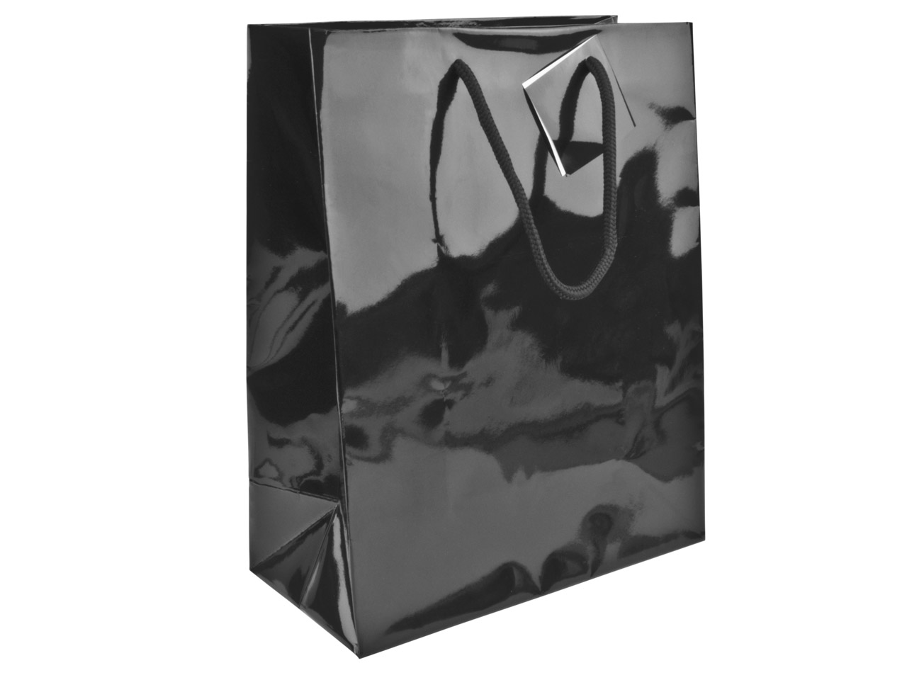 Sacs cadeaux brillants de couleur noire, petit modèle. Dimensions : 170 x 120 x 75 mm. Vendus par paquet de 5.