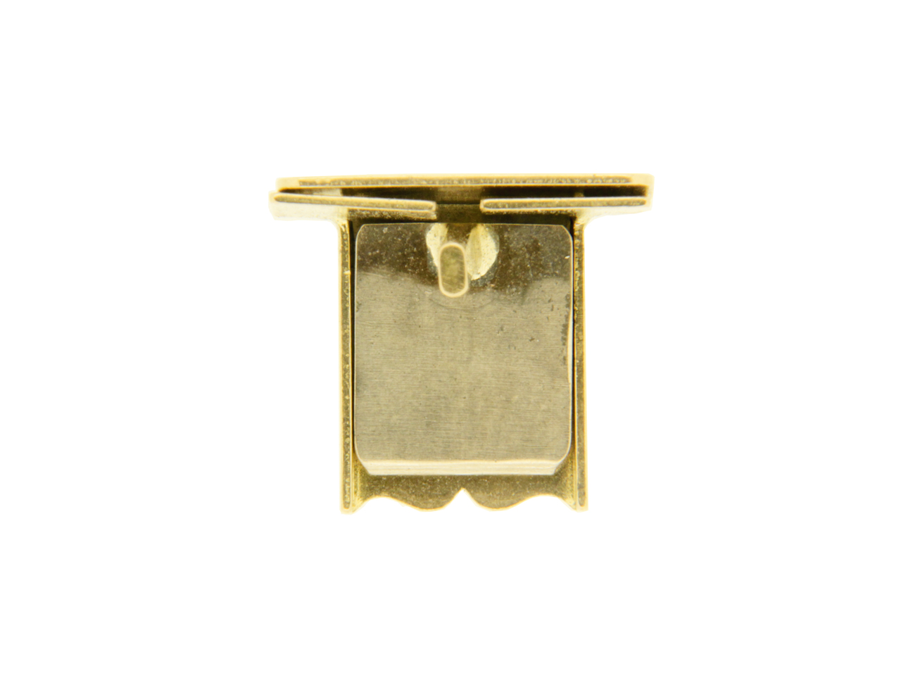 Ce fermoir cliquet est en or jaune 18 carats. Composé de deux parties, on trouve au centre la lame pliée qui est en or gris 18 carats, et vient se bloquer en position dans une secende partie du...