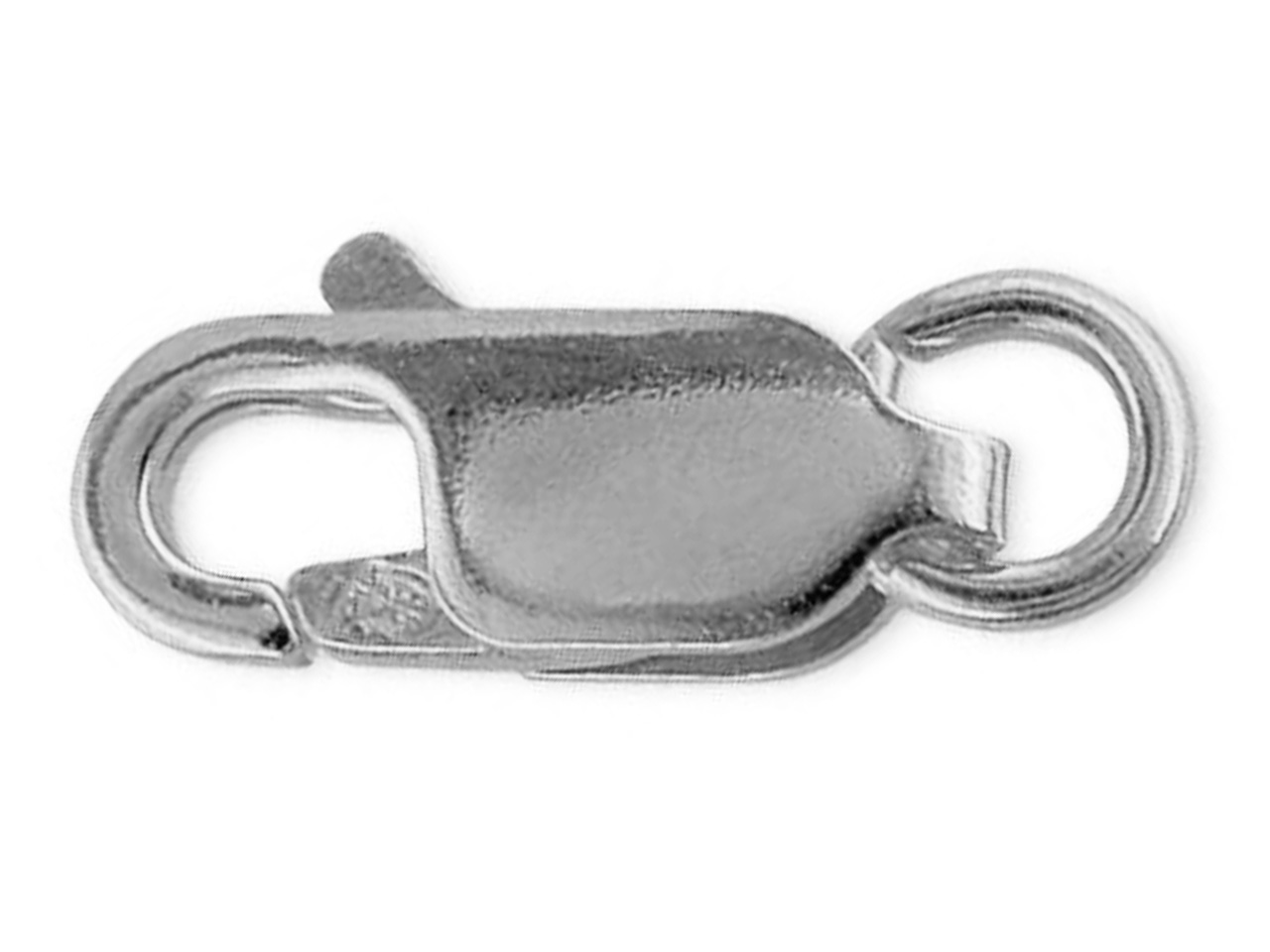 Ce mousqueton plat allongé en or Gris rhodié mesure 10 mm de longueur. D'allure élancée, il se confond idéalement avec des mailles plates comme la gourmette cheval ou alternée. L'anneau de bout...