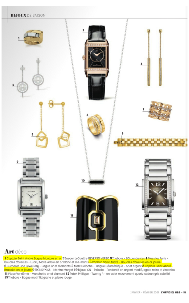 2021 / Jan-Fev / L'officiel HBJO > Mise en avant des bijoux Caplain Saint Andr�