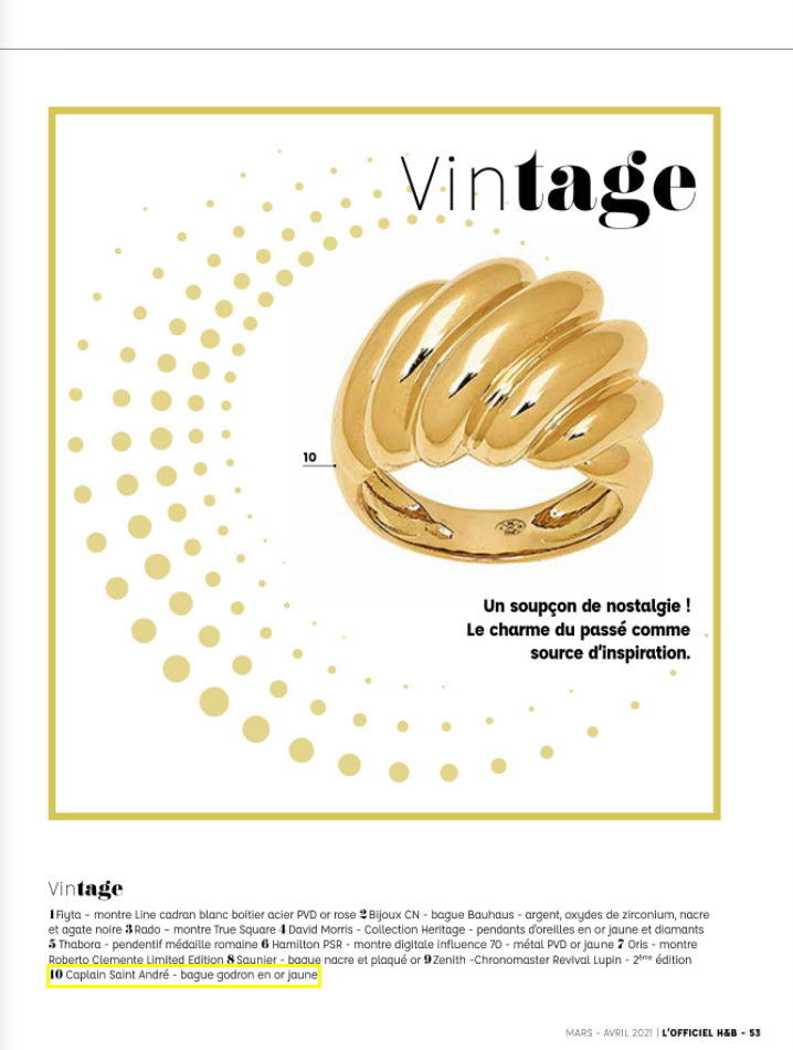 2021 / Mars/Avril / L'officiel HBJO > Mise en avant des bijoux Caplain Saint Andr�