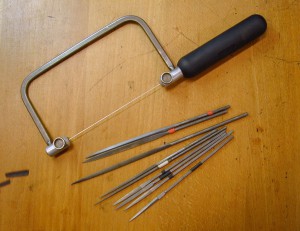 La scie de bijoutier, appelée aussi bocfil, est une petite scie à main avec une lame très fine. Ces lames sont disponibles en différentes épaisseurs et vous permettront de réaliser des coupes très précises. Il s’agit d’une scie à chantourner, aussi vous pourrez réaliser des coupes d’angles au milieu de la plaque sans difficulté, ou partir du centre de votre plaque depuis un trou percé au foret.