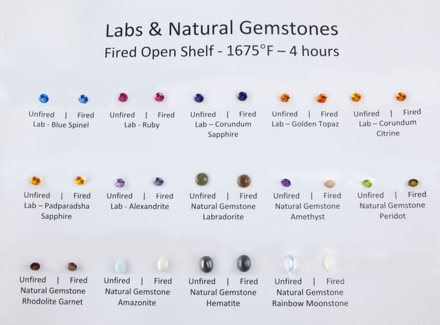 Bien que ces résultats ont été obtenus après réalisation de nombreux tests au chalumeau ou au four, il y a toujours des risques d’abîmer ou de casser une pierre à la cuisson. Chaque pierre est unique, certaines sont quasiment parfaites, d’autres contiennent des matériaux qui peuvent les fragiliser. Ces informations sont donc à prendre à titre de référence.