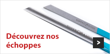 • HSS : Acier rapide spécial, constance de qualité, brillance exceptionnelle de coupe, dureté élevée, haute résistance à l’usure. Cette composition offre aux échoppes un bon équilibre entre souplesse et rigidité. Elles sont suffisamment résistantes pour relever les grains, tout en étant malléables à la flexion ce qui facilite le travail sans à-coups.