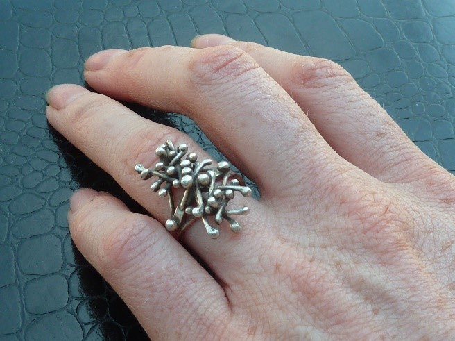 Je réalise principalement des créations en argent et peux, sur commande, les réaliser en or. J’incorpore des pierres semi précieuses, des cristaux et des perles.