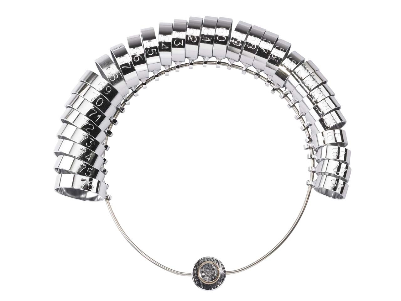 Anneaux larges, numérotation FR. Baguier ou jeu de bagues sert à mesurer la grosseur des doigts. Il est composé d'anneaux dont la circonférence augmente graduellement. Composition : Alliance l...