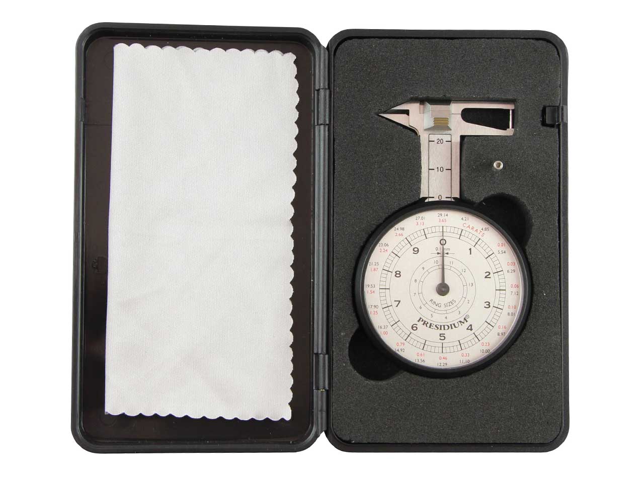 Calibre à diamants/pierres PRESIDIUM - PDG avec tableau (affichage analogue). Cet appareil est idéal pour le calibrage des mêlés et autres pierres précieuses, avec une précision au 0,1 mm. La ...