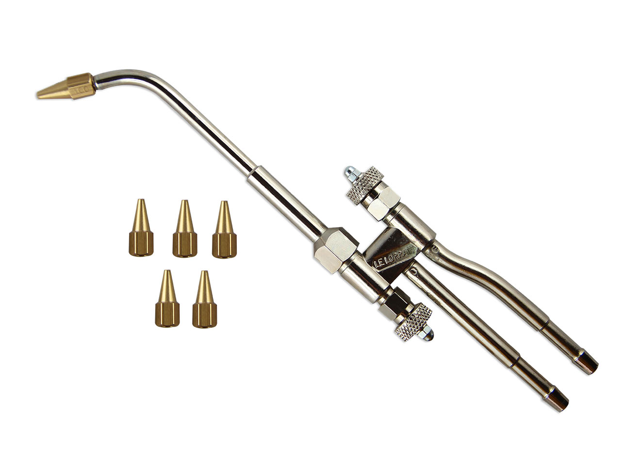 Chalumeau OXYGAZ 703000 Le Lorrain, livré avec le jeu de 6 buses taille 10, 16, 25, 40, 63 et 100 L/H. Ce chalumeau permet d'effectuer des opérations allant du micro-soudage à la fonte en fonct...