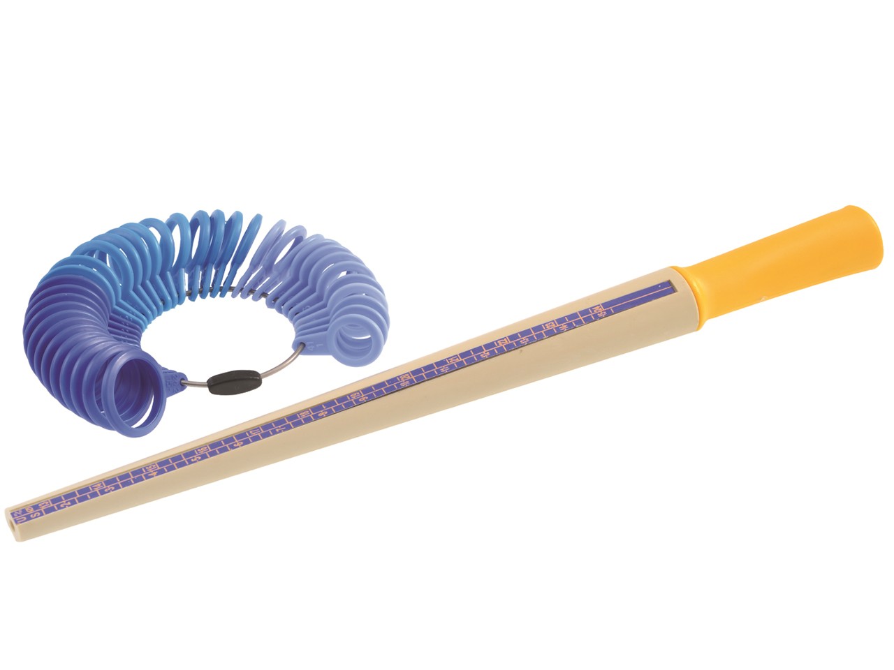 Set baguier et triboulet en matière plastique. Baguier : 36 anneaux, poids 40 g. Avec anneaux de 3 groupes de couleurs différentes No 1 - 12, 13 - 24, 25 - 36, permettant une meilleure identifi...