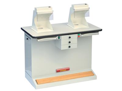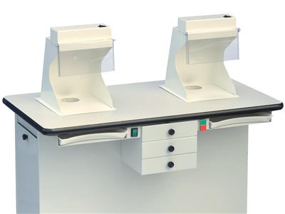 Éclairage individuel, 3 tiroirs, 2 cuvettes de service. Le modèle "standard" est conçu pour un usage professionnel mais fractionné dans la journée. L'air contenant de la poussière est aspiré di...