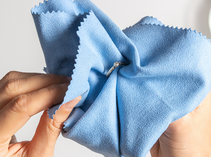 Pour nettoyer un bijou en surface, nous vous conseillons d'utiliser une chiffonnette douce pour enlever les traces de doigts et la poussière.