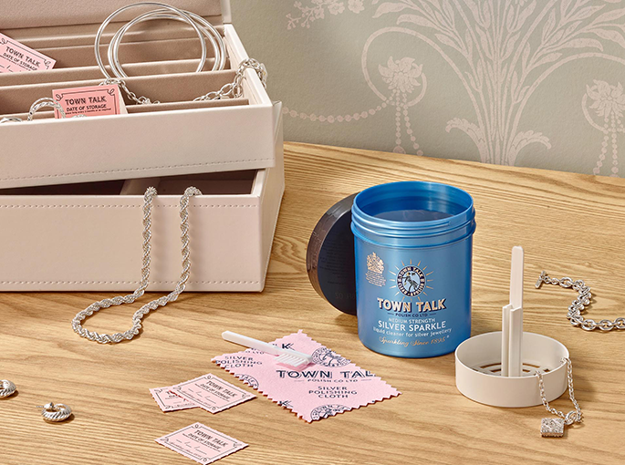Town Talk fournit des produits de haute qualité, allant des chiffons de polissage aux bains nettoyants, formulés pour être efficaces tout en étant doux pour les métaux et les pierres précieuses.